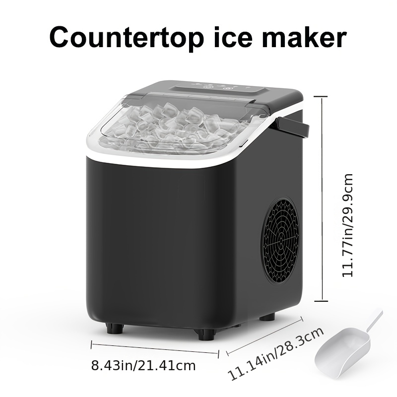 Ice Maker Machine For Countertop 30 Pound Bullet Ice Machine, Portable Bullet Ice Machine Can Produce 9pcs Of Bullet Ice In 6 Minutes, With Automatic Cleaning Function For Baskets And Spoons, And Can Be Operated With One Click For Campings