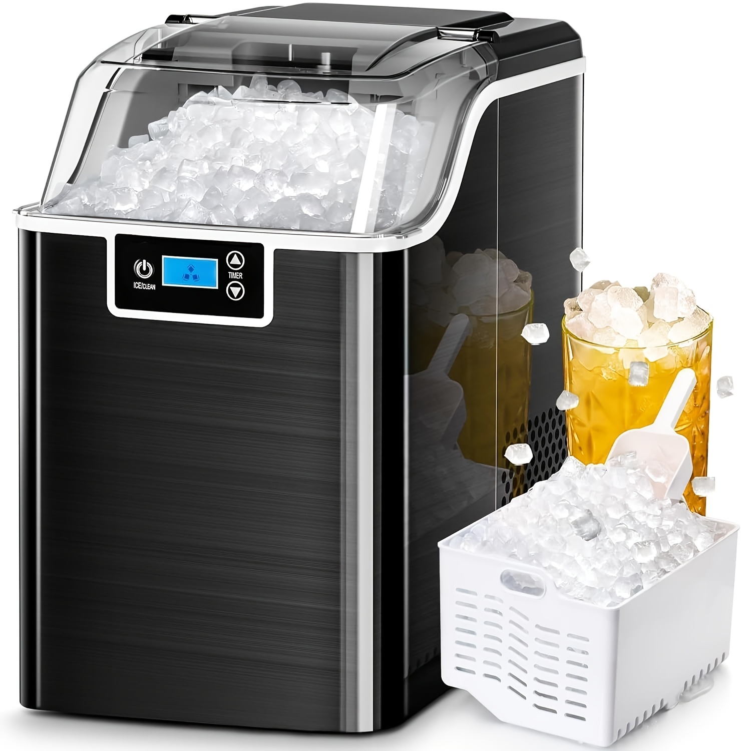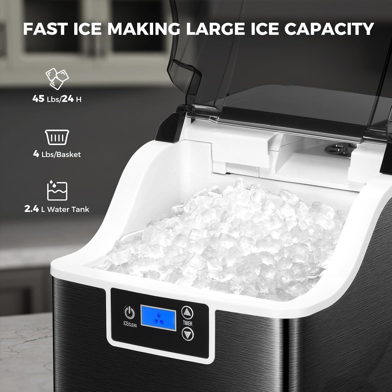 45Lbs Nugget Ice or 26Lbs Bullet Ice Maker or 4L Mini Fridge for Options, Pellet Ice Maker Machine with 24H Timer, Nugget Ice Maker Countertop, Self-Cleaning Pebble Countertop Ice Maker with Crushed Ice for Home Black