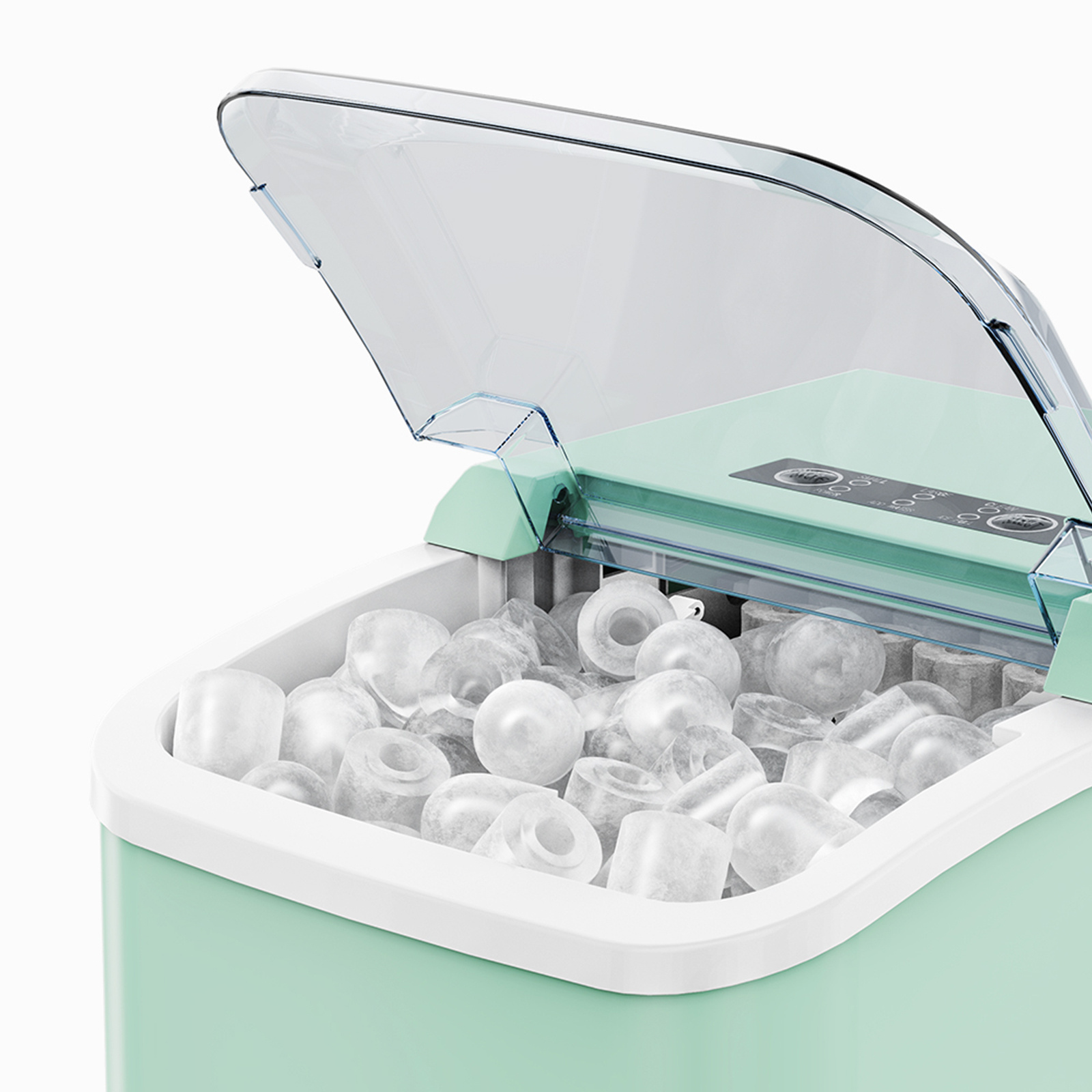 MCQ 1PCS Countertop Ice Maker | 9 Cubes in 6 Mins • 26lb Daily Capacity • Self-Cleaning • 2 Bullet Ice Sizes • Includes Scoop & Basket (Black/Green), 9 x 12 x 13 In