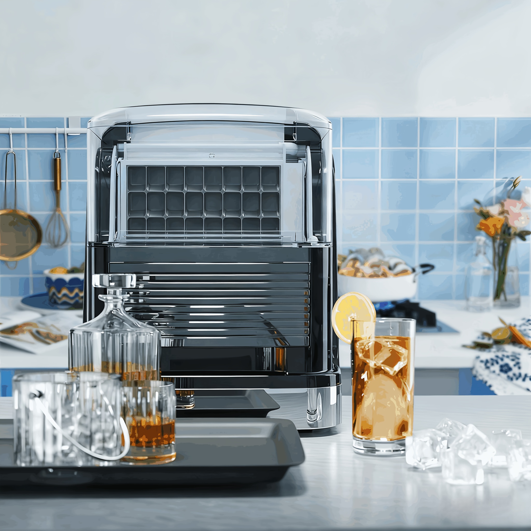 35Lbs/ Day Countertop Ice Maker, 24 Cube Ices in 6 Mins, 2 Ice Sizes, Portable Ice Maker, Compact Countertop Ice Maker, Ice Scoop & Basket for Home/ Office/ Party, Black, Ice Maker with Handle, Large Capacity Ice Making Machine