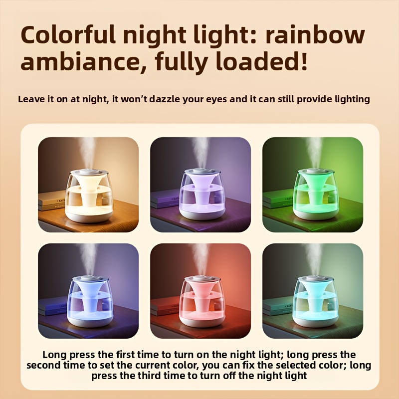 101.44oz Large Capacity Humidifier with Dual Nozzle Mist, Silent Operation, Digital Humidity Display, 7-Color Night Light, Overflow Protection, USB-Powered, for Home, Office, Humidifier For Home, Office Humidification, Modern Humidifier