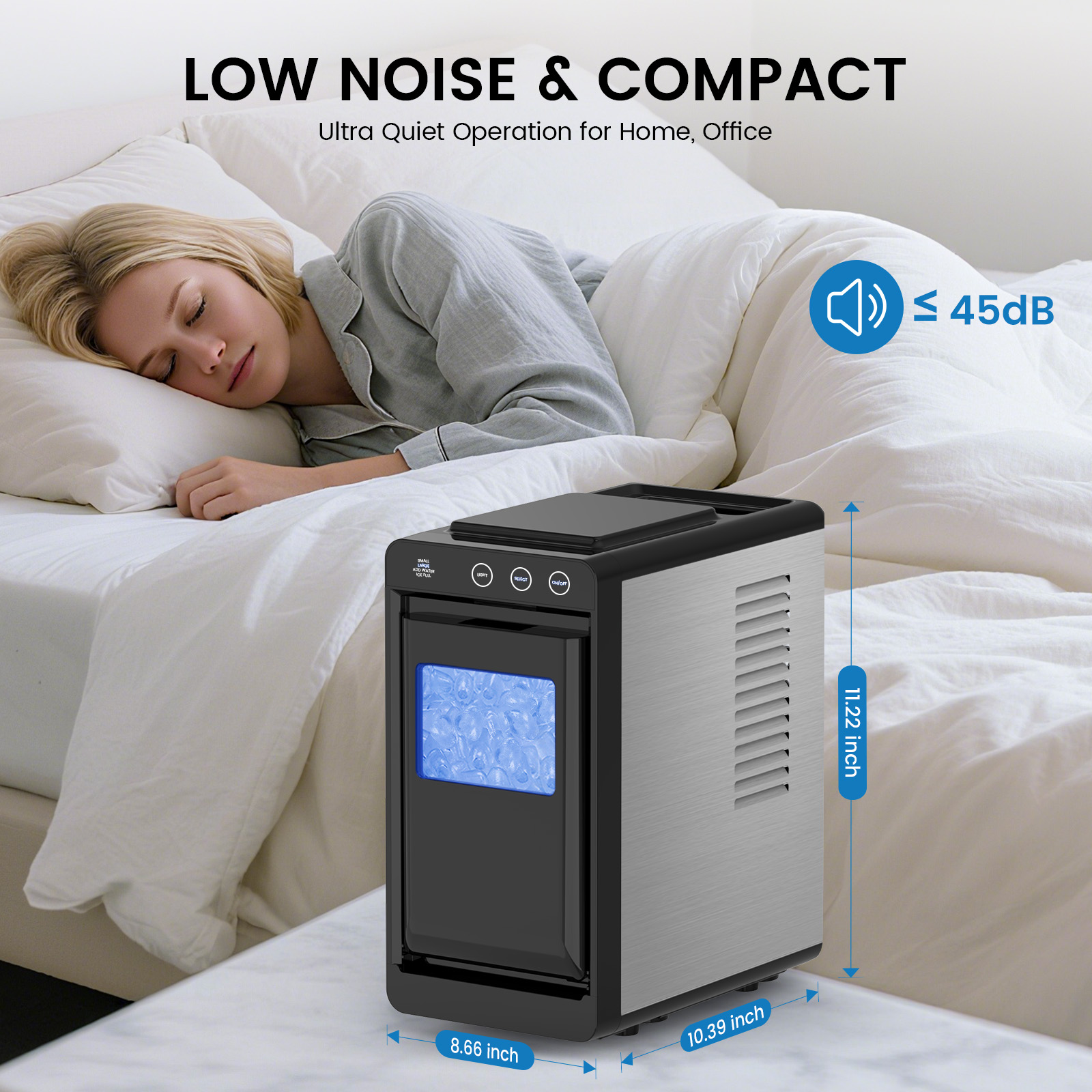 Ice Maker Countertop, Portable Ice Machine with Self-Cleaning, 26 lbs/ 24Hrs, 8 Cubes in 6 Mins, Quiet Compact Ice Maker for Home, Kitchen, RV, Camping, Ice Maker with Handle