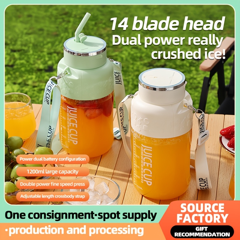 1200 milliliters capacity, universal for all seasons, large-capacity wireless portable juicer bucket, electric sports cup-style fresh fruit juicer, 10 sets of stainless steel blades, powerful motor, highly suitable for outdoor fresh juice extraction.