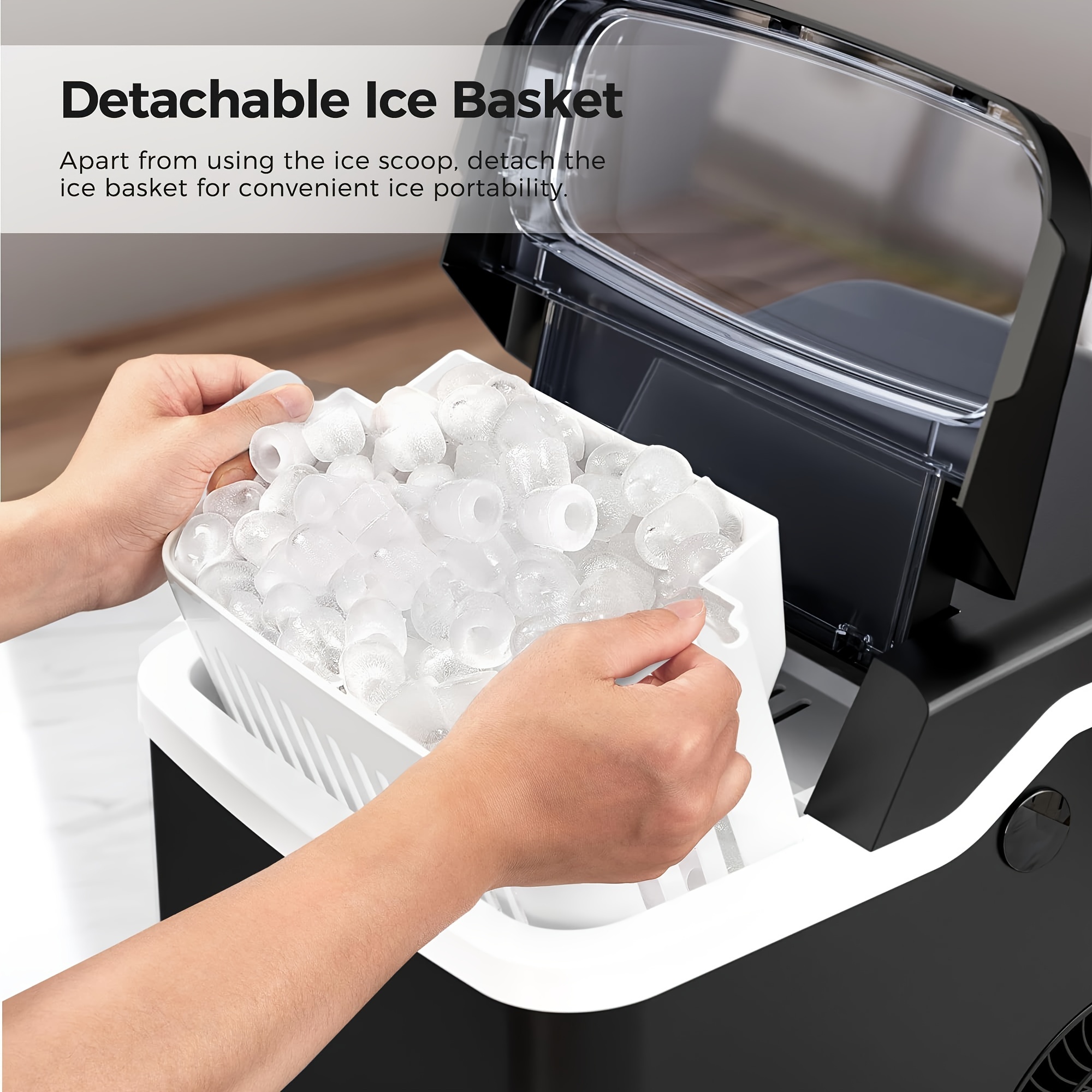Multi-Gauge Commercial Ice Machine Countertop, 28/35/45 Lb/Day, Self-Cleaning, 24 Hour Timer, LED Panel with Ice Scoop, Bullet Ice/Nugget/Cube Ice Maker, Home/Bar/Party, with Ice Basket