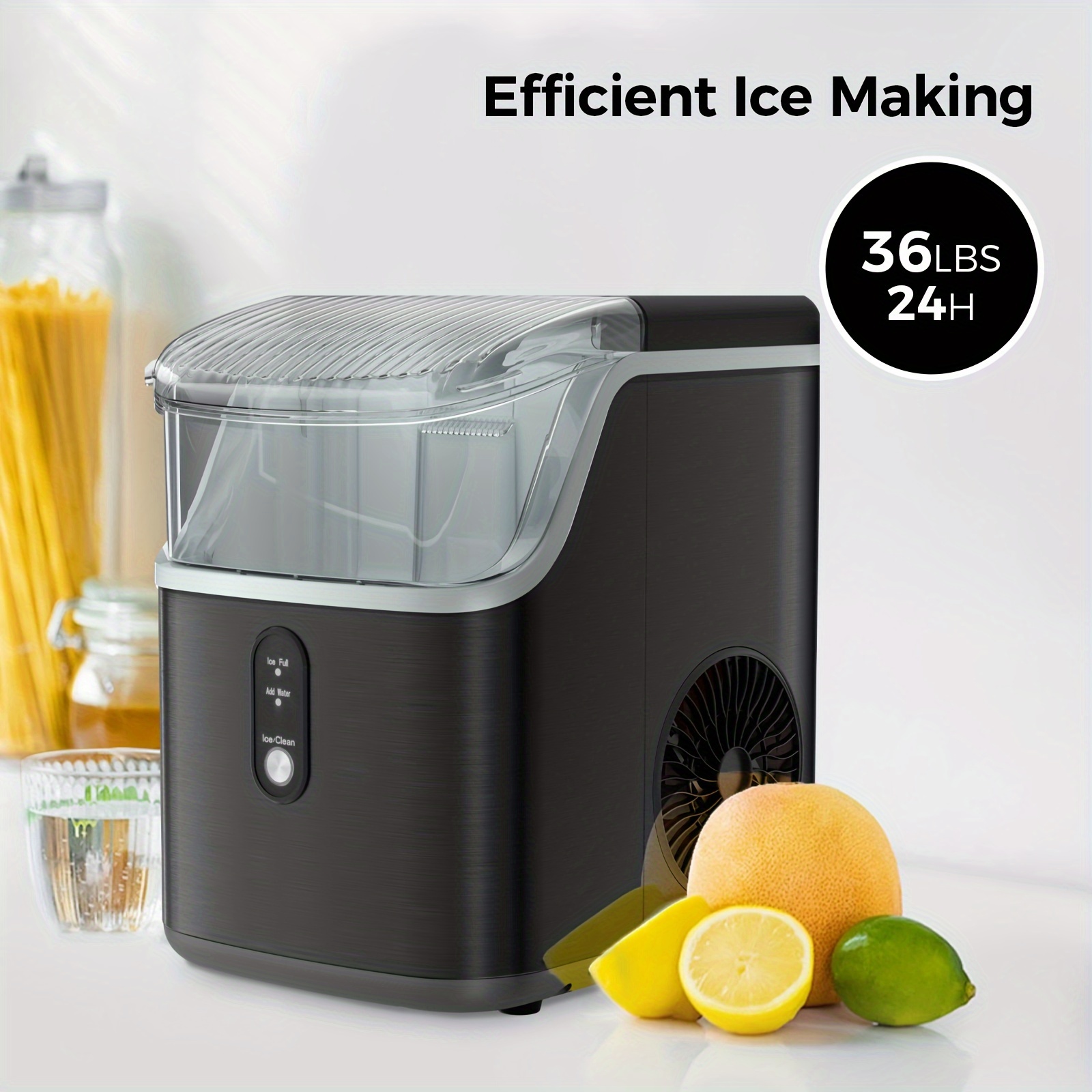 Portable Countertop Nugget Ice Maker with One-Touch Self-Cleaning, 35lbs/24H & 7-Minute Ice Production, Soft Chewable Nuggets, Includes Scoop & Basket, Stainless Steel Design for Home, Kitchen, Office, Parties (Black), Chewable Ice Maker, Kitchen Appliance, Modern Kitchenware, Easyclean Machine